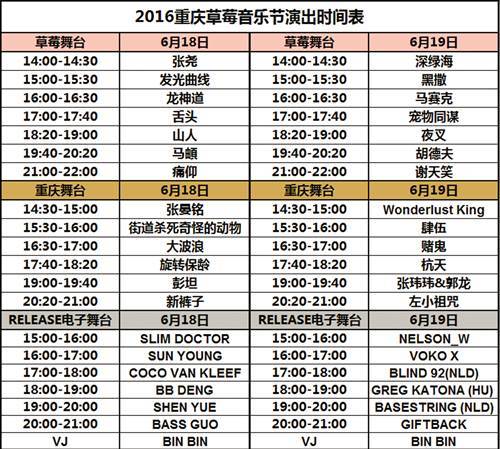 熟悉草莓音乐节的朋友大都了解音乐节现场一般设置为3个舞台,即草莓舞台、爱舞台以及RELEASE电子舞台。在2016年重庆草莓音乐节的现场,主办方打破常规,特意将爱舞台别出心裁地改为重庆舞台,届时将邀请到重庆本地艺人登台演出,打造最具本土味道的草莓音乐节。
