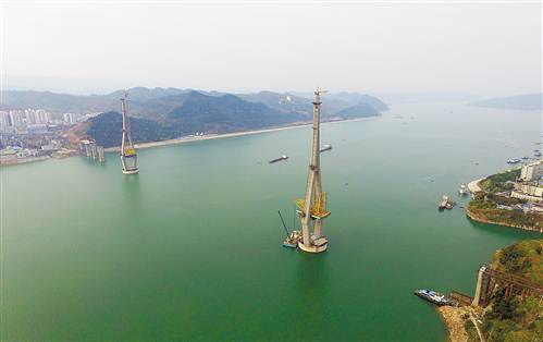 3月15日,丰都长江二桥梭形主塔屹立在宽阔的江面,桥面施工正有序展开,预计今年底建成通车。丰都长江二桥主桥长1466米。建成后,将缩短丰都新县城和名山风景区的距离,进一步推动丰都南北两岸协调发展。